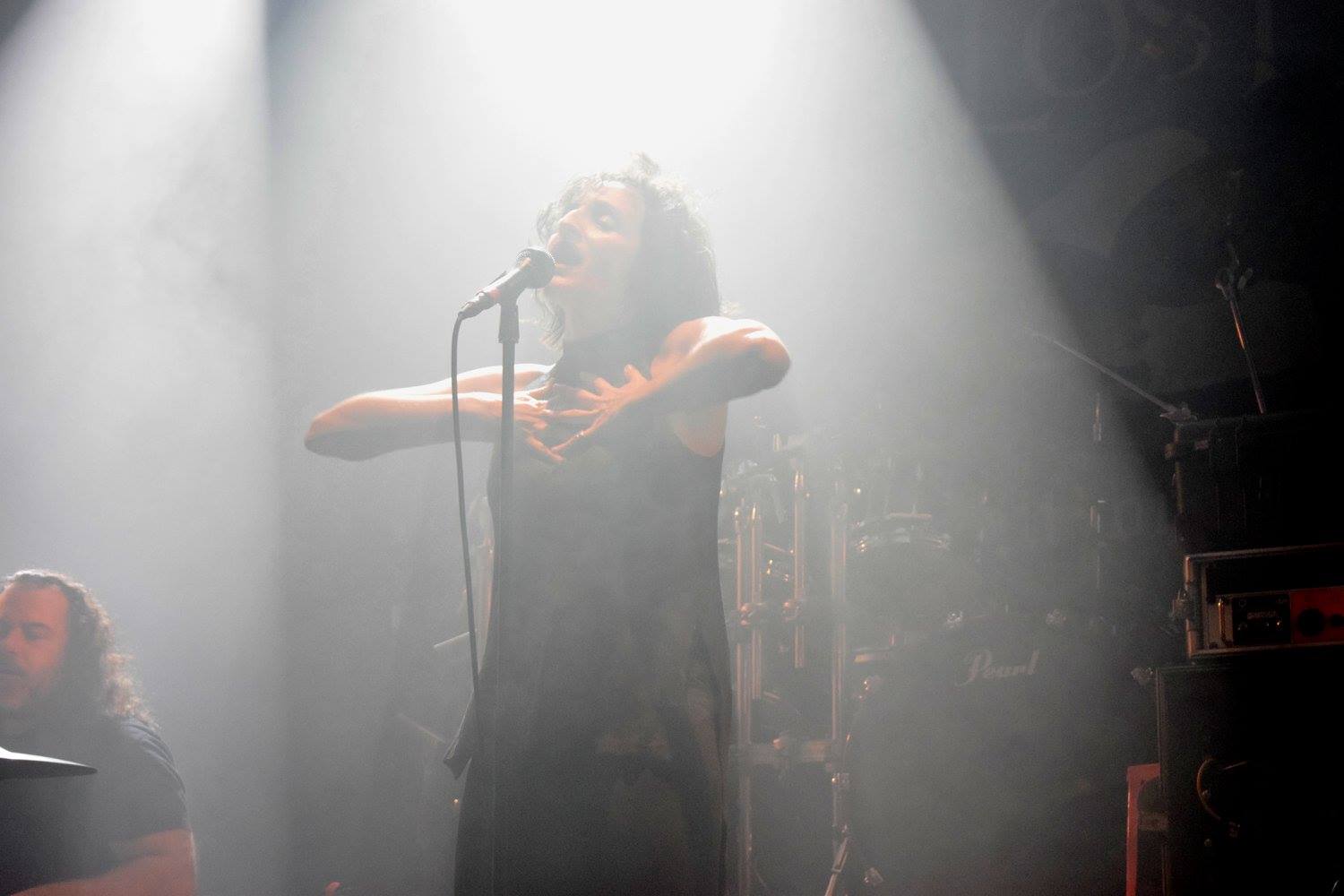 Sinistro hrají pochmurný doom s nádechem gotiky, kytarové rify se v měkčích partech opakují a s citem postupně gradují. Ve výjimečných okamžicích se pak několikrát za set prodrala na povrch i portugalská nátura, a to v podobě několika temperamentních, výrazných drnknutí do strun. Dost prostoru bylo dáno bicím, a to zaslouženě. Byly totiž jak naprogramované počítačem a tahle jejich přesnost se pak nejvíc ukázala v těch pomalých, melodičtějších částech songů. V těch částech, kde se pozvolné pokyvování hlavou s postupnou gradací mění na stále křečovitější pohyby ovlivněné valící se zvukovou stěnou. A takových okamžiků měly Sinistro v setu dost. Jako když stoupáte do nebe a postupně vám dochází síly. A pak bum, pád do pekla. V těchto chvílích pak opět vynikala Patricie, během vteřiny otočila z jemného hlasu na rázný výkřik a bez problémů zase zpět. A pak další pád do tmy. Konec setu.